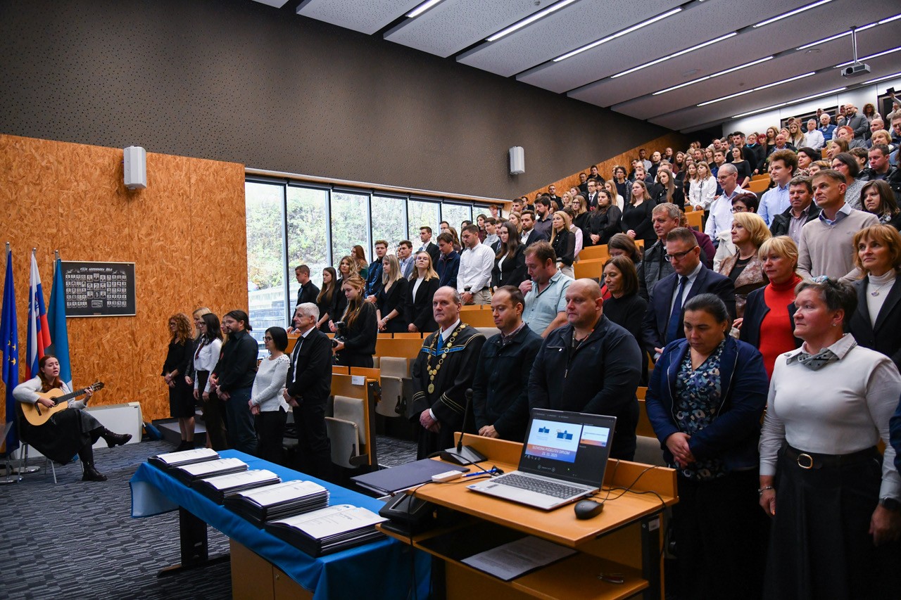 Z velikim veseljem razglašamo, da smo v petek, 21. novembra 2025, v naši predavalnici Auditorium Magnum slavnostno podelili diplome diplomantom 1. in 2. stopnje. Ob tej priložnosti jim čestitamo za izjemen dosežek in jim želimo uspešno pot v nadaljnjem poklicnem in akademskem življenju.